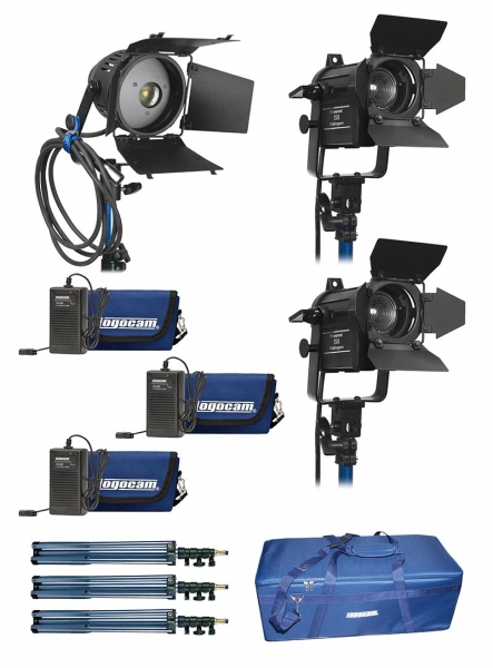Автономный компактный осветительный комплект Logocam A500/SFF DIM KIT оптимален для работы на выезде или в любом месте, где работа от сети нежелательна или невозможна. Состоит из трех компактных светодиодных светильников: один Logocam L-Spot 30 со световым потоком эквивалентным мощности галогенного светильника 300 Вт со шторками, два Logocam LED Fresnel 20 со световым потоком эквивалентным мощности галогенного светильника 150 Вт со шторками. В качестве питания используются три комплекта питания PK3(X) в кофрах и с зарядными устройствами. Возможна работа от сети 220 В (блоки питания идут в комплекте). Поставляется в транспортном кофре с водоотталкивающей пропиткой. Подойдет для решения любых задач.Время автономной работы не менее 2 ч. Масса комплекта 14 кг.