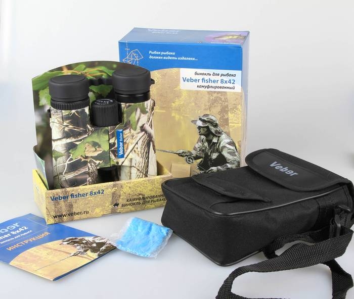 Бинокль Veber Fisher 8x42 камуфлированный с заплечным ремнем