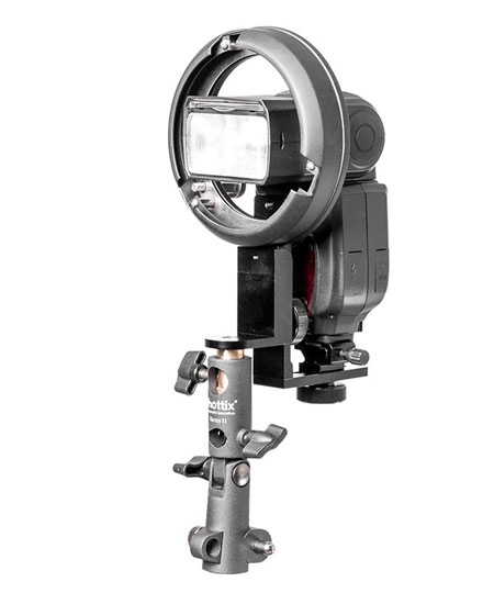 Держатель с креплением Phottix HS Speed II предназначен для крепления накамерной вспышки на стойку. С помощью детали типа L, стандартного башмака, винта крепления ¼х20 и ремешка осуществляется возможность крепления вспышек различных размеров либо в вертикальном либо в горизонтальном положении. Одновременно при помощи крепительных колец Bowens могут устанавливаться различные отражатели и рассеиватели света. Модификатором света Luna Beauty Dish и софтбоксом 2-в-1 Комплектация Держатель с креплением Phottix HS Speed II: