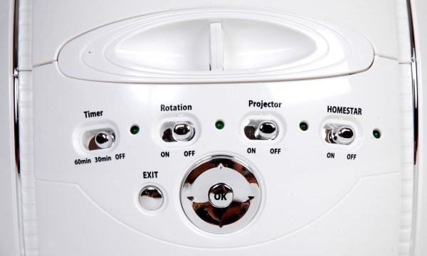 Принцип действия прибора напоминает традиционную схему работы обычных проекторов, только вместо слайдов планетарий проецирует точную копию небосвода, усыпанного звездами. Мощный светодиод обеспечивает яркость картинки, встроенный объектив увеличивает и фокусирует ее на окружающих объектах: потолке, стенах и т.д. В планетарии также есть второй проектор, который воспроизводит видео с флеш-карт (в комплекте идут 2 карты с фильмами). Пользователь имеет возможность самостоятельно менять угол наклона проектора и включать оба проектора как вместе, так и по отдельности. Если Вы случайно заснете под звездным великолепием, то планетарий автоматически выключится через 60 или 30 минут.