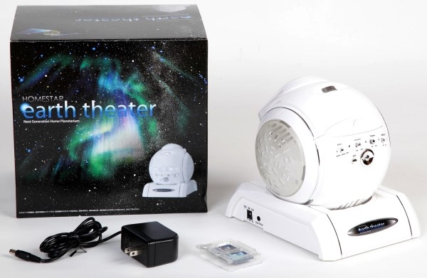 Один из самых популярных в мире домашних планетариев, оснащенный двумя проекторами. Первый — проецирует 60 тыс. небесных объектов, а второй — демонстрирует видеофильмы на космическую тематику. В комплект прибора уже включены две флеш-карты с фильмами "Космический зонд Хаябуса" и "Красота звездного неба". Изображение звезд отличается высокой реалистичностью и яркостью благодаря качественной оптике и мощному излучателю. Вы можете приобрести планетарий "HomeStar Earth Theater" черного или белого цвета.