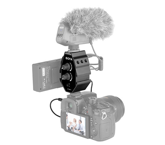 Двухканальный аудио адаптер (микшер) Boya BY-MP4 BY-MP4 является 2-канальным звуковым адаптером, с TRRS кабелем 3,5 мм и 3,5 мм TRS кабелем , который позволяет снимать видео смартфоном, цифровой зеркальной фотокамерой или видеокамерой. Этот адаптер обеспечивает компактное решение для микширования и микширования с двумя микрофонами, которое позволяет легко монтировать и управлять двумя микрофонами или беспроводными приемниками. Он не требует батарей или источника питания. Он оснащен тремя встроенными монтажными башмаками для подключения разнообразных микрофонов или беспроводных приемников, а также других аксессуаров, таких как светодиодный индикатор, монитор и т. Д.