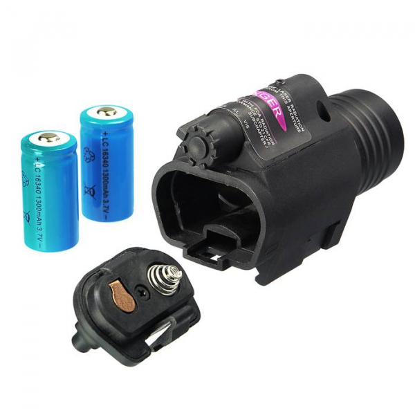 Фонарь подствольный Veber FL-04 с лазером Компактный вариант изделия по принципу 2 в 1. Корпус изготовлен из жесткого пластика, по внешнему виду и прочности даже не отличимым от силумина. Задняя крышка закрывает батарейный отсек, на ней же расположены кнопка включения и гнездо для выносной кнопки (длина шнура — 1 метр). На верхней части корпуса — ручка переключения режимов. Режимы: Выкл, лазер + фонарь, фонарь, лазер. Асферическая поверхность отражателя светодиода фонаря, формирует световой поток с ярким пятном в центре и большой периферийной зоной, что удобно для ориентировки. Оси фонаря и лазера строго параллельны (однако, предусмотрена возможность регулировки направления луча лазера), поэтому при совместном использовании, лазерная точка находится в центре светового пятна от фонаря. Крепление под Weaver. Закрепление устройства осуществляется путем нажатия на подпружиненную площадку прибора в основании корпуса. Обычное (не влагозащищенное) исполнение. Рекомендованное применение — легкая пневматика, пейнтбол, арбалеты и т. п.
