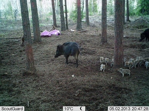 Цифровая камера слежения (фотоловушка) SunTek HC-500M HD с модулем GSM(GPRS) и невидимой вспышкой. Предназначена для контроля определенной зоны и автоматического фиксирования на фото или видеозапись всех происходящих в этой зоне событий. Работает полностью в автоматическом режиме. Делает высококачественные снимки (до 12 МП) или записывает видеоролики (в том числе и ночью благодаря встроенному ИК-подсветке в невидимом спектре ). Интервалы срабатывания камеры при постоянном движении в зоне наблюдения также задаются заранее. Влагозащищенный корпус камуфлированной окраски позволяет вешать камеру даже в лесу и оставлять там на длительное время, так как в режиме ожидания она может работать до 6 месяцев. Для крепления камеры предусмотрен специальный ремень и дополнительно защитный бокс с более гибкой возможностью крепежа под разным углом. Питание осуществляется 8 батарейками АА. Фото или видеозапись идет на карту SD (до 32 Гб) и отправляется Вам на телефон в виде MMS или на электронную почту через GPRS. Управление и настройка камеры осуществляется пультом ДУ, входящим в комплект. SunTek HC-500M передаст фото или видео в течение 1 мин. на Ваш телефон или электронную почту. Технология передачи данных (GPRS метод) работает лучше, быстрее и экономит деньги. Камера реагирует на любое движение человека (или животных) в определенной зоне благодаря высокочувствительному пассивному инфракрасному (PIR) датчику, после чего автоматически захватывает изображения высокого качества (до 12 МП) или записывает 1080p HD видео-ролики (WVGA или QVGA). На рассвете устройство начинает принимать цветные фотографии и видео, пока не будет недостаточной освещенности (в сумерках), тогда камера он начинает записывать инфракрасные (монохромные) фото и видео. Камера устойчива к воздействию дождя и снега.