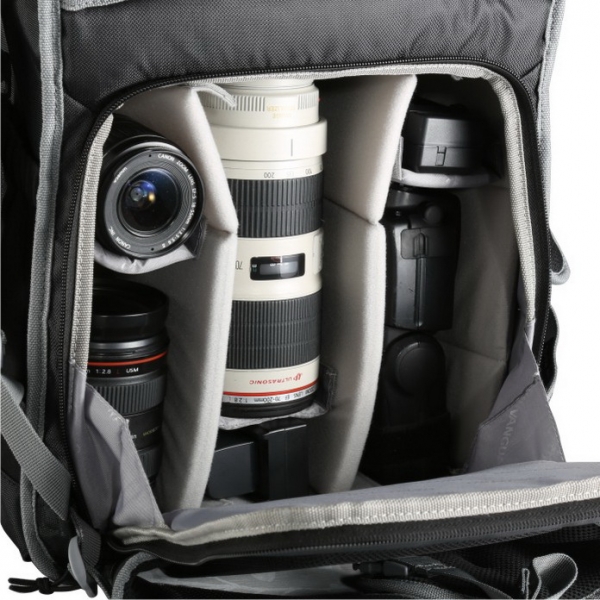 Рюкзак Vanguard Sedona 51 - это прекрасный выбор для фотографов которым нужно надежно защитить свое оборудование во время походов или городских прогулок. Система ремней с 10 точками настройки и дышащая ткань на спине рюкзака позволяют с легкостью нести ваше оборудование во время длинных переходов. Быстро превратите Sedona в рюкзак для выездов на целый день, с верхним отсеком для личных вещей, или же только для оборудования. Вытащите защитный чехол и Sedona может быть использован как обычный рюкзак для работы или учебы. Три варианта надежного крепления штатива, монопода или трости позволяет переносить дополнительное оборудование еще проще. Доступ к основному отсеку расположенный на задней стенке делает переноску оборудования безопасной, а быстрый доступ обеспечивается путем снятия лямок и переворота сумки при застегнутом поясном ремне. Дополнительные особенности, такие как карман для питьевой системы и сигнальный свисток в одной из застежек делают рюкзаки Sedona идеальным вариантом для загородного использования. Характеристики: