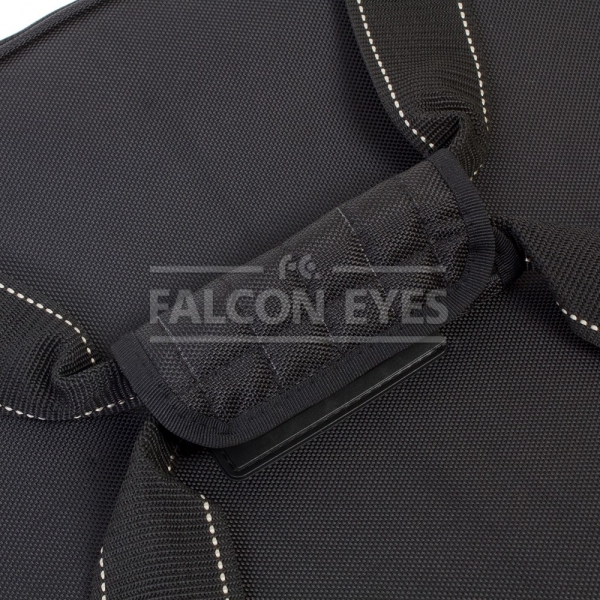 Falcon Eyes CC-16 – сумка с колесами на подшипниках и с жесткими стенками, предназначена для транспортировки и хранения студийного оборудования: комплекта студийных вспышек, стоек и аксессуаров к ним. Сумка изготовлена из прочного синтетического материала, закрывается на застежку-молнию с двумя бегунками. Сумка оснащена регулируемыми жесткими перегородками и стяжками для плотной фиксации. Стенки и дно — жесткие, усилены пластиковыми вставками. Внутри на крышке два прозрачных кармана-сетки на молнии. Крепкие ручки для переноски можно соединить между собой стяжкой на липучке. Широкий наплечный ремень, два колеса на подшипниках, а также пластиковая складная ручка для перевозки обеспечивают максимальное удобство при использовании.