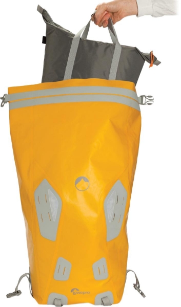 Дизайн моделей необычный и яркий. Эти сумки, изготовленные в соответствии с требованиями стандарта водонепроницаемости IPX6, способны выдержать пребывание в странах с влажным климатом или в поездках на каноэ, байдарке, паруснике или даже на собачьих упряжках на севере. Горловина широкая, и доступ к оборудованию удобен. Отделение для камеры съемное, с уплотнительными стенками, что защищает технику от ударов и, как дополнительная мера, от возможного избытка воды или других неблагоприятных погодных условий, когда отделение для камеры находится внутри сумки или рюкзака. Есть множество улучшенных деталей, таких как кпипсовые замки, ручки и ремни, молнии. В рюкзак Backpack 40L легко поместятся личные вещи фотографа. Спинка и ремни оснащены дышащими отверстиями, на плечевых ремнях есть петли для крепления аксессуаров. На передней стороне предусмотрены специальные отверстия для дополнительного снаряжения. Сумка Duffle 20L предназначена для более компактного набора техники. Модель легко зафиксировать на байдарке или лодке — через специальные точки крепления можно пропустить веревку. |