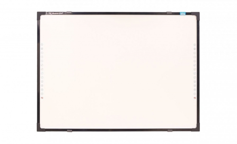 Интерактивная доска IQBoard DVT TN082 Интерактивная доска IQBoard DVT TN082 при своей работе использует технологию цифровых инфракрасных камер, расположенных по углам доски. Соответственно, позиционирование пальца или маркера происходит через отслеживание камерами. Сама поверхность доски антивантальная, антибликовая, на нее нанесена специальная пленка, чтобы можно было писать на ней маркерами сухого стирания. Доска IQBoard DVT TN082 поддерживает функцию Multi-touch и поддерживает до 10 одновременных касаний, таким образом, за доской могут работать до 5 человек. По обеим сторонам поверхности доски расположены кнопки для быстрого доступа к наиболее часто используемым функциям. В комплекте с доской IQBoard DVT TN082 идет настенное крепление, а также программное обеспечение. Минимальные технические характеристики компьютера, к которому можно подключать интерактивную доску: