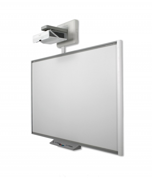 Интерактивная доска Smart Board SBX885i7 (комплект) Интерактивный комплект Smart Board SBX885i7: интерактивная доска SMART Board X885 (диагональ 87"/221 cm, формат 16:10, технология DViT, питание (100V до 240V AC, 50/60 Hz, 5V DC 2.0A), ключ активации SMART NOTEBOOK в комплекте), расширенная панель управления ЕСР, проектор SMART U100w (DLP, ультракороткофокусный, 3600 ANSI), настенное крепление для проектора; состоит из 4 мест