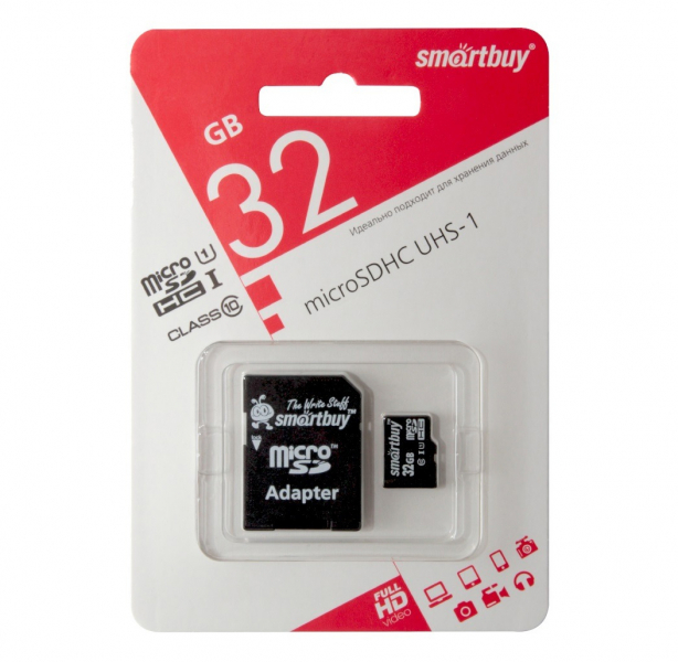 Карта памяти с адаптером 32Гб Class 10: скорость передачи данных 10 МБ/с Доступная емкость: 32 ГБ Комплектация: карта, адаптер |