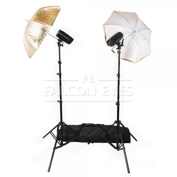 Комплект студийного оборудования SSK-2150POP для выездной съемки. Общая мощность вспышек комплекта – 300 Дж. Благодаря двум комбинированным зонтам, можно создавать различные световые эффекты. Сумка, входящая в комплект, позволяет легко его транспортировать.