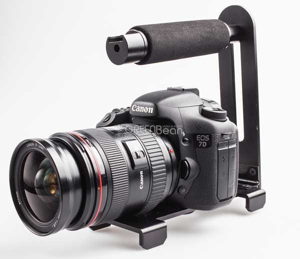 Очень популярная модель кронштейна для DSLR камер, используемая в экшн-съемках. Все элементы конструкции сделаны из металла, ручка обтянута поролоном, при эксплуатации не вращается. Имеет крепление «холодный башмак» для вспышки, микрофона, LED-осветителя и пр. Конструкция разборная, складная. Площадка для камеры имеет 8 отверстий 1/4 дюйма и 1 отверстие 3/8 дюйма, что позволяет с помощью крепежного винта найти наиболее правильное положение камеры на кронштейне, а также закрепить дополнительное оборудование, или установить всю конструкцию на штативе.