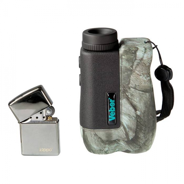 Легкий, компактный и недорогой дальномер из семейства Veber. Очень удобно лежит в руке, кнопки управления - под указательный и безымянный пальцы. Благодаря покрытию soft-touch, поверхность прибора кажется обрезиненной и не скользит. Имеет 4 режима измерения: 1. обычный, 2. в дождь, 3. туман, 4. расстояние до объекта больше 150 метров. Уникально малое ближнее расстояние для измерения - всего 5 метров. Две кнопки управления: ON/ADJUST - для включения прибора и проведения измерений, MODE - для изменения режимов работы, в зависимости от погодных условий и смены единиц измерений (ярды/метры). Качество измерений оценивается количеством "пеньков", высвечивающихся вместе с показаниями на ЖК-дисплее. С подсевшей батареей или без батареи, может использоваться как простой монокуляр с увеличением 6х и ближней точкой фокусировки 5 метров. Окуляр с удаленным выходным зрачком, с возможностью диоптрийной подстройки. Выдвигающийся наглазник для удобства наблюдения в обычных или солнцезащитных очках.