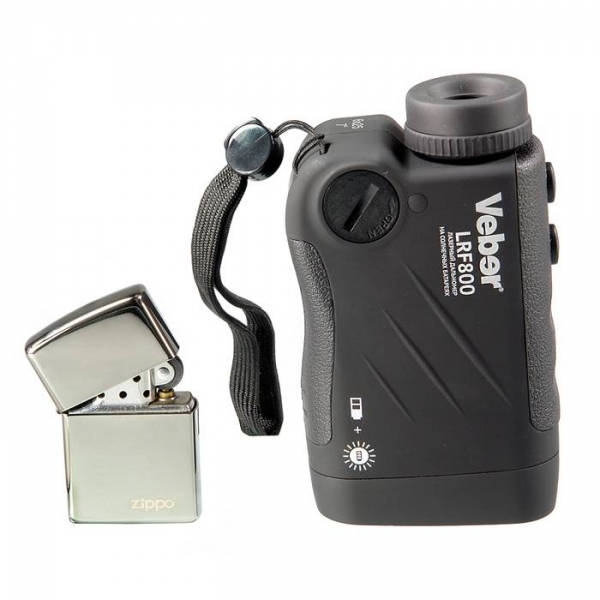 Корпус прибора изготовлен из прочного поликарбоната с нескользящим покрытием soft-touch (придает ощущение "обрезиненности"), с резиновыми вставками сверху и снизу. Влагозащищенное исполнение. Дальномер очень удобно лежит в руке, кнопки управления - под указательный и безымянный пальцы. Кнопка ВКЛ - для включения прибора и проведения измерений (минимальная дистанция - реально 6 метров). Кнопка MODE - изменение режимов работы: 1. Обычный, 2. Дождь, 3. Туман, 4. измерение на расстоянии больше 150 м (для исключения влияния малых объектов - таких как провода, ветки и т.д.). Длительное нажатие изменяет режим измерений с ярдов на метры. Результаты работы и параметры режимов работы, выводятся в поле зрения прибора на ЖК-дисплей. Линии и надписи тонкие и совершенно не мешают наблюдению. Если батарейки нет, а аккумулятор солнечной батареи сел, дальномер можно использовать просто в качестве монокуляра с увеличением 6х (ближняя точка фокусировки - 5 метров). Окуляр с удаленным выходным зрачком, с возможностью диоптрийной подстройки. Выдвигающийся наглазник для удобства наблюдения в обычных или солнцезащитных очках.