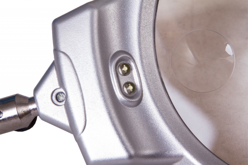 Лупа настольная Levenhuk Zeno Desk D9 Настольная лупа Levenhuk Zeno Desk D9 – удобный оптический прибор для изучения мелких предметов. Бифокальная линза большого диаметра предназначена для работы на разной кратности, а гибкий штатив помогает точно расположить лупу над нужной областью. Линза сделана из прочного оптического пластика. С помощью держателя-прищепки лупу удобно фиксировать на столе, полке или даже дверце шкафа. Встроенная подсветка поможет проводить наблюдения в слабо освещенных помещениях. Она состоит из 2 светодиодов, которые установлены в оправе линзы. Для включения подсветки используется переключатель на корпусе.