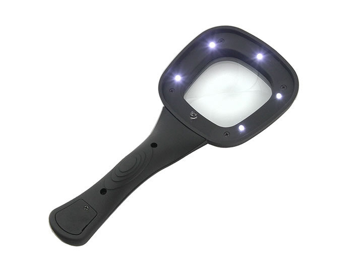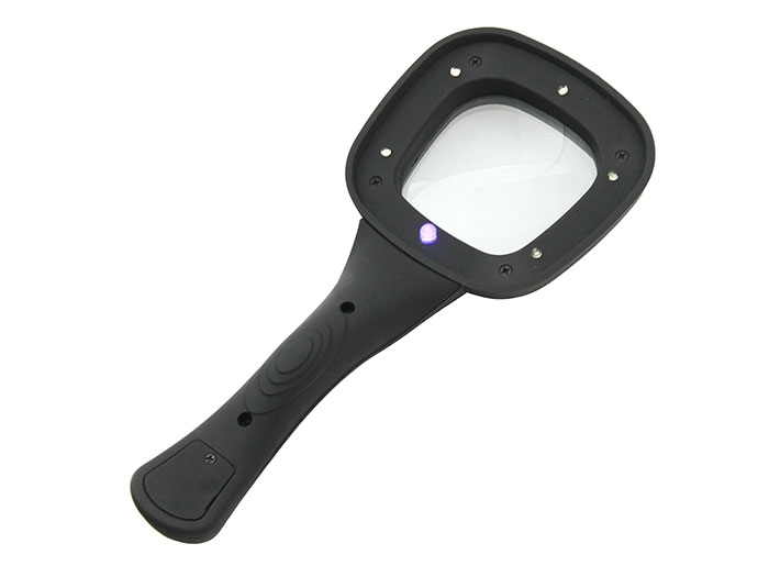 Лупа с увеличением 3x в черном пластиковом корпусе. По периметру оправы линзы расположены 6 светодиодов -5 для подсветки и 1 для проверки водяных знаков. С обратной стороны изогнутой 12 см ручки расположен переключатель режимов освещения. Технические характеристики Увеличение, крат: 3 Размер линзы, мм: 52x52 Длина ручки, мм: 120 Питание: 4 батарейки AG10 Материал линзы: пластик Материал корпуса: обрезиненный пластик Вес, г: 98 |