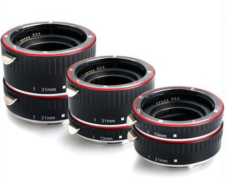 Макрокольца для Canon представляют собой цилиндр, который ставится между фотоаппаратом и объективом. Объектив удаляется от сенсора, что позволяет ему сфокусироваться ближе. Удлинительные кольца выпускаются для многих байонетов и резьбовых стандартов крепления объективов. Тем самым вы можете получить большое количество новых предметов съёмки на имеющемся оборудовании. Они не вносят дополнительных оптических элементов между предметом и сенсором камеры, таким образом минимизируя потенциальные потери качества изображения. С помощью макроколец вы можете создавать фантастические макро-фотографии, не покупая дорогостоящие макрообъективы.