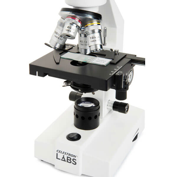 Микроскоп Celestron LABS CM2000CF Биологический микроскоп Celestron Labs CM2000C со встроенным галогеновым осветителем проходящего света, позволяет быстро настроить освещение и обеспечивает яркие, естественные цвета. Два широкоугольных окуляра (10x и 20x) и 4 ахроматических объектива (4x, 10x, 40х и 100x), позволяют получить широкий диапазон увеличений (40x, 80х, 100x, 200х, 400x, 800х, 1000x и 2000х). Это позволит Вам подобрать оптимальное увеличение под конкретный образец. При необходимости можно приобрести дополнительные окуляры или объективы. Так же можно подключить цифровую камеру для микроскопа, для вывода и захвата видео изображения. Цельнометаллический корпус этого микроскопа оснащен ручками грубой и точной фокусировки, гарантирующие точную фокусировку, что в сочетании с качественной стеклянной оптикой, обеспечивает высокое качество изображения и длительный срок эксплуатации микроскопа. В комплект поставки включены 10 подготовленных микропрепаратов, позволяющие моментально погрузиться в захватывающий мир открытий. Двухкоординатный предметный столик с коаксиальными рукоятками позволяет быстро найти нужный фрагмент микропрепарата, а нанесенные нониусы на предметном столике, позволят Вам, быстро найти нужный фрагмент даже если Вы меняли микропрепарат. Конденсор Аббе в сочетании с ирисовой диафрагмой позволит Вам легко отрегулировать яркость подсветки, для получения оптимального изображения. Микроскоп может найти широкое применение в учебном процессе, как в школе, в колледже так и высших учебных заведениях. Возможность работы от батарей позволяет использовать микроскоп на уроках, проводимых на улице. Такой микроскоп может использоваться и для научных изысканий, в промышленных лабораториях.