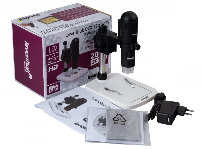 Легкий, компактный и высокотехнологичный – все это современный цифровой микроскоп Levenhuk DTX 720 WiFi! Возможности этой модели впечатляют: широкий диапазон увеличений, вывод изображения на экран в режиме реального времени, фотосъемка и видеозапись, автономная работа от встроенного аккумулятора. Главная же особенность Levenhuk DTX 720 WiFi – возможность подключения к мобильным устройствам на базе iOS и Android при помощи беспроводной технологии Wi-Fi. Теперь для работы с микроскопом вам не нужны компьютер и кабели – достаточно смартфона или планшета!