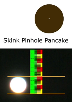Характеристики:1. Skink Pancake выполнен из высококачественной нержавеющей стали. Максимальный диаметр отверстия: 20мм Фокусное расстояние: 45мм (расстояние от пинхола до пленки или сенсора камеры) Угол обзора: 51° 2. Пинхол толщиной 0.03мм выполнен из высококачественной нержавеющей стали. Для удобства использования помещен между двумя пластинами размером 20мм. Отверстие пинхола абсолютно круглое, что позволяет добиться оптимального результата. Диаметр отверстия: 0.3мм Диафрагма: f/150 3. Zone Plate позволяет получить эффект "свечения". Для удобства использования помещен между двумя пластинами размером 20мм. Центральная зона: 0.3мм / 299 µm Разработан под фокусное расстояние 45мм Количество зон: 13 Диафрагма: f/57 4. Zone Sieve позволяет получить эффект "гало" - светящийся ореол вокруг объекта. Для удобства использования помещен между двумя пластинами размером 20мм. В отличие от стандартной Zone Plate, данная пластина содержит только 2 концентрических круга с относительно небольшими отверстиями, которые при ясной солнечной погоде или при съемке контрастных объектов создают эффект ореола на освещенном предмете или в отражении воды. Центральная зона: 0.3мм / 299 µm Разработан под фокусное расстояние 45мм Количество зон: 5 (включая 2 пунктирные зоны вокруг центральной) Диафрагма: f/94