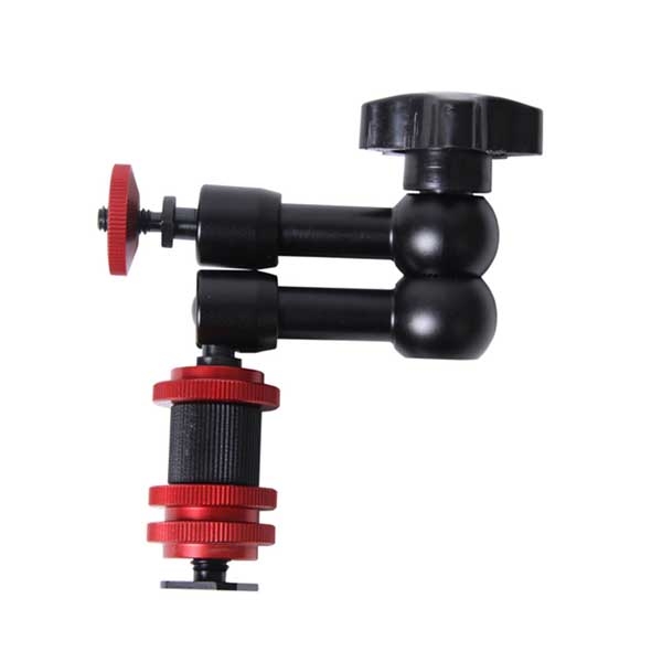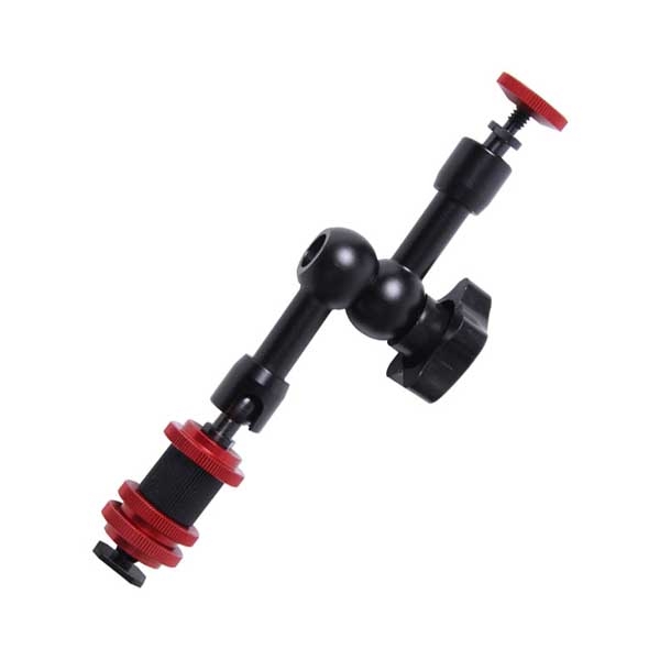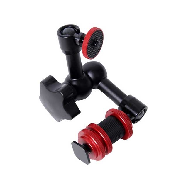 Этот держатель (консоль, magic arm) предназначен для установки осветителей, Центральное «колено» — с трещоткой, барашек центрального колена фиксирует не только перекладины, но одновременно и вращающие элементы на концах этих перекладин. Элемент «холодный башмак» держателя ARM 7 крепится на резьбе, сняв его можно закрепить держатель на стойке или площадке с винтом 1/4 дюйма.
