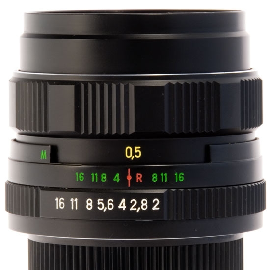 Пределы шкалы диафрагм 1:2-1:22, 1:2-1:16
