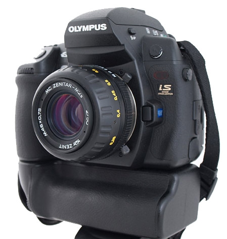 Объектив Зенитар-М 50 mm f/2.0 + адаптер М42-Olympus 4/3 с чипом подтверждения фокусировки