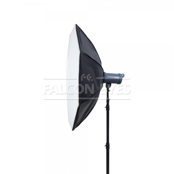 Октобокс Falcon Eyes FEA-OB12 BW — световой модификатор для осветительных приборов с байонетом Bowens (байонетное кольцо сменное, диаметр 145 мм), предназначен для создания мягкого рассеянного освещения без резких теней и бликов. Диаметр октобокса 120 см. Октобоксы позволяют получить равномерный направленный поток мягкого света, при использовании в портретной фотографии дают округлый блик в глазах, имитирующий естественное освещение. Устройство включает в себя отражатель, внешний и внутренний рассеиватель, хвостовик с байонетным креплением. Закрытая конструкция позволяет избежать нежелательных бликов и потерь светового потока. Отражатель, с серебристой тканью внутри, обеспечивает равномерную засветку рассеивателя, который в свою очередь, благодаря большой поверхности, смягчает формируемые тени. Дополнительный внутренний диффузор улучшает равномерность светового потока. Наконечники на упругих металлических спицах не повреждают тканевые спицедержатели софтбокса и облегчают сборку конструкции. Установленный на приборе октобокс можно поворачивать на 360 градусов, выбранное положение фиксируется винтом на адаптере. В комплекте чехол для хранения.