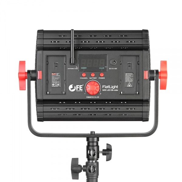 Осветитель светодиодный Falcon Eyes FlatLight 600 LED Bi-color Осветитель светодиодный Falcon Eyes FlatLight 600 LED Bi-color представляет собой светодиодную панель из 600 светодиодов размером 19,5 x 17 см с регулируемой цветовой температурой, беспроводным пультом дистанционного управления, 4-лепестковыми шторками и возможностью питания от аккумуляторных батарей серии NP-F. Осветитель подходит для кино- и видеопроизводства, фотографии. Мощность 36 Вт Эффективность прибора обусловлена применением в качестве источника света панели со сверхъяркими светодиодами с высоким индексом цветопередачи CRI (более 95). Компактный корпус осветителя практически не нагревается, потребляемая мощность составляет 36 Вт. Регулировка цветовой температуры Возможность регулировки цветового баланса позволяет избавиться от фильтров в пользу встроенного бесступенчатого управления цветом от 3200К до 5600K. Беспроводной пульт дистанционного управления В комплект поставки входит беспроводной пульт дистанционного управления осветителем (группой осветителей) на расстоянии до 50 м: удаленного включения/выключения, регулировки яркости и цветовой температуры. Flicker-free Технология Flicker-free (без мерцания) позволяет снимать видео со скоростью записи 60 кадров в секунду. Эффект мерцания отсутствует на всех значениях яркости прибора. Точная регулировка яркости Прибор позволяет точно выбрать требуемое значение яркости и быстро вернуться к заранее подобранным настройкам. Значение яркости отображается на LCD экране, индикация 10-100 с шагом 1. 4-лепестковые шторки в комплекте Быстросъемные четырехлепестковые шторки помогут ограничить световой поток в нужном направлении, чтобы получить световой акцент на объекте съемке или избежать нежелательной засветки объектива камеры. Эргономичная панель управления На задней панели прибора находится большой ЖК экран с 4-разрядной индикацией, удобный диммер (выполняющий функцию изменения яркости и цветовой температуры), кнопки управления режимами работы, кнопка выбора источника питания, вход и выход DMX (обеспечивают внешнее управление через консоль, приобретаемую отдельно). Питание от аккумуляторных батарей На задней панели осветителя находятся отсеки для установки аккумуляторных батарей серии NP-F 13-19В (батареи приобретаются отдельно). В условиях стационарной съемки осветитель питается от сети 220В с помощью входящего в комплект сетевого адаптера. Металлический кронштейн Прочный металлический кронштейн позволяет поворачивать осветитель на 360° по двум осям.