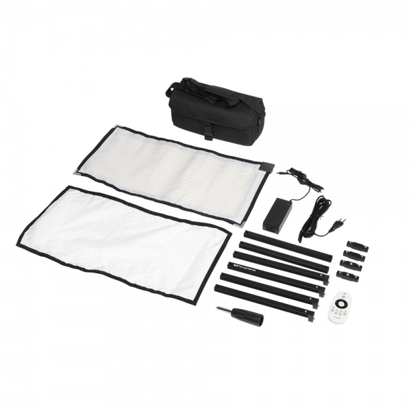 Осветитель светодиодный Falcon Eyes FlexLight 448 LED Модульная система FlexLight 448 LED является универсальным осветителем для фотосъемки, кино-, теле-, и видеопроизводства, может быть установлен в любом, даже самом ограниченном пространстве в студии или на локации. Благодаря компактным размерам в сложенном виде, этот осветитель станет отличным решением для путешествующих фотографов и кинематографистов. Осветитель студийный Falcon Eyes FlexLight 448 LED состоит из гибкого, легкого и сохраняющего форму светодиодного мата 30х60 см с 448 светодиодами общей мощностью 85 Вт, складного каркаса с монтажным отверстием 1/4", рассеивающего экрана на липучке, пульта дистанционного управления, рукоятки и сумки с наплечным ремнем. FlexLight 448 LED с технологией Flicker-free (без мерцания) позволяет снимать видео со скоростью 60 кадров в секунду. Гибкий светодиодный мат сохраняющий форму FlexLight 448 LED открывает новые творческие возможности для съемки, например, светодиодным матом можно "обернуть" объект съемки и получить равномерное круговое освещение, или, свернув мат в цилиндр светодиодами наружу, добиться длинных тонких бликов в отражающих объектах. FlexLight 448 LED сохраняет свою форму благодаря встроенной по периметру светодиодного мата гибкой проволоке. Светодиодный мат направленный к объекту съемки своей обратной черной стороной может использоваться как светоотсекающий флаг. Конструкция осветителя позволяет использовать его там, где большинство источников света просто не могут быть установлены. Цветовая температура составляет 5500K (дневного света) и имеет высокий рейтинг CRI >90. Сборный каркас Каркас осветителей серии FlexLight представляет собой сборную систему рамок, что позволяет из нескольких осветителей собрать один большой для создания подходящего размера. На каркасе имеется монтажное отверстие 1/4" для установки на стойки или другие опоры. Лента-липучка приклеена на каркас с двух сторон и используется для крепления светодиодного мата и рассеивателя. Универсальный рассеивающий экран Рассеивающий экран быстро крепится к каркасу и не искажает цветовую температуру светодиодов. Экран является частью модульной системы и может использоваться с каркасом отдельно от светодиодного мата для смягчения жесткого света, как с искусственными, так и с естественными источниками освещения. В сочетании с рассеивателем рамочный каркас образует аналог студийного софтбокса или диффузионной панели. Беспроводной пульт дистанционного управления В комплект поставки входит беспроводной пульт дистанционного управления для регулировки яркости, удаленного включения/выключения и управления группой осветителей на расстоянии до 10 м.
