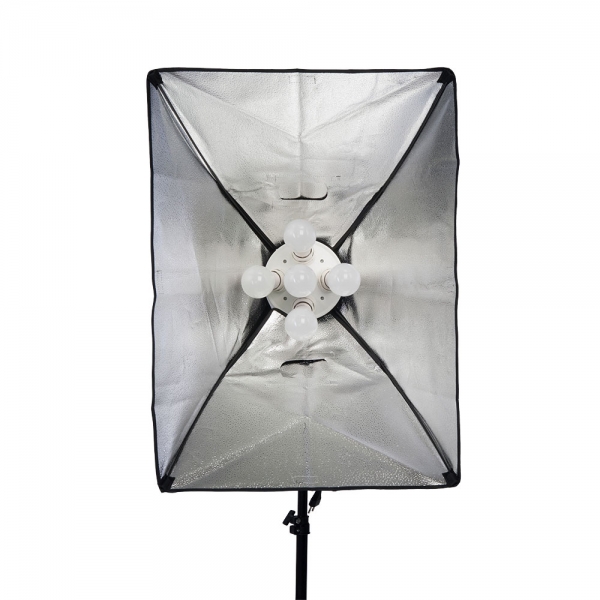 Осветитель светодиодный Falcon Eyes KeyLight 518 SB5070 LED Falcon Eyes KeyLight 518 SB5070 LED - светодиодный комплект предлагает фотографам и видеооператорам готовое решение, подходящее для съемки в различных жанрах – от съемок на документы до съемки рекламных каталогов. В комплект входит светильник с 5 патронами E27, 5 светодиодных ламп с дневным светом (5400К) мощностью 18 Вт каждая, софтбокс 50х70 см и 3-х секционная стойка высотой 190 см. 5-ламповый светодиодный осветитель Осветитель оборудован 5 патронами стандарта Е27, в которые устанавливаются светодиодные лампы. На задней панели расположены два переключателя, каждый из которых управляет функцией включения/выключения для двух ламп расположенных по периметру, а центральная лампа включается общим переключателем, который находится на кабеле питания. Осветитель питается от сети 220 В и имеет стандартный разъем для установки на стойки с креплением 5/8". Осветитель можно использовать самостоятельно или вместе с софтбоксом 50х70 см из комплекта поставки. Софтбокс 50х70 см В комплект входит прямоугольный световой модификатор размером 50х70 см, поддерживаемый 4-мя стальными спицами, которые устанавливаются в осветитель KeyLight 518 и формируют монолитную конструкцию. Внутри софтбокса находится фактурная серебристая ткань, спереди на липучки крепится рассеиватель. Софтбокс создает мягкое рассеянное освещение без резких теней. Входящий в комплект софтбокс предназначен для использования только с осветителем KeyLight 518 и светодиодными лампами. Стойка 190 см Алюминиевая стойка с пружинным амортизатором (на нижней секции) поднимается на высоту до 190 см и складывается до 69 см. Пружинный амортизатор предохранит оборудование от повреждения при случайном ослаблении зажимов. На ножки стойки можно установить ролики (приобретаются отдельно).