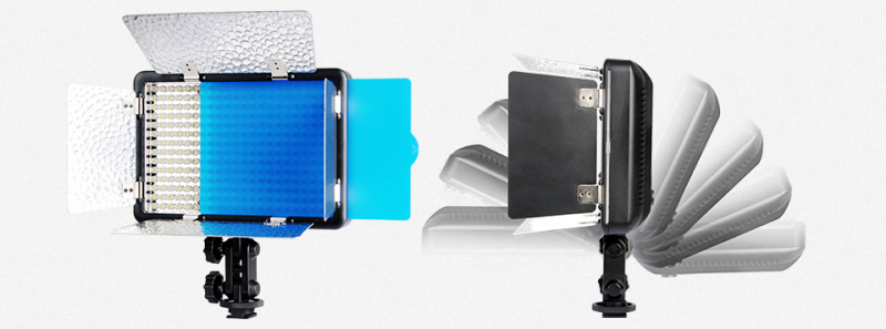 308 высококачественных светодиодов обеспечивают высокую яркость. Беспроводная система синхронизации в группы (6 групп и 16 каналов), дистанционная регулировка яркости и цветовой температуры. Три модели с большим ЖК дисплеем. Питание от литиевого аккумулятора или сетевого адаптера. Шторки в комплекте помогают создать больше световых эффектов.