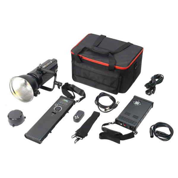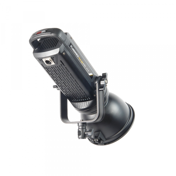 Осветитель светодиодный GreenBean SunLight PRO 340 LED GreenBean SunLight PRO 340 LED – cветодиодный осветитель для студийной кино-, теле- и фотосъемки. Поддерживает протокол DMX512. Позволяет плавно регулировать мощность светового потока (10–100%). Источник света – светодиодные матрицы суммарной номинальной мощностью 340 Вт. При любой яркости индекс цветопередачи CRI составляет более 95. Особенность модели – внешний блок управления. Благодаря этому вес самого осветителя – всего 2 кг, а всеми настройками можно легко управлять не снимая осветитель со стойки. Блок управления с валкодером и цифровым дисплеем снабжен ремнем для переноски или подвешивания на стойке. Длина кабеля для соединения блока с осветителем – 1,9 м. На расстоянии до 50 м работой осветителя можно также управлять с 99-канального пульта. Малошумные вентиляторы и автоматическая защита от перегрева позволяют длительно использовать осветитель при полной мощности. Рефлектор диаметром 175 мм крепится на осветитель посредством байонета Bowens. Его внутренняя поверхность имеет серебристое фактурное покрытие. На рефлекторе предусмотрен держатель для зонта. Для питания осветителя и блока используется сетевой адаптер или 2 аккумуляторные батареи V-mount (приобретаются отдельно). Сетевой адаптер с выключателем снабжен ремнем для переноски или подвешивания на стойку. Металлический корпус осветителя устойчив к механическому воздействию. Металлический кронштейн типа «лира» позволяет отрегулировать наклон осветителя и надежно закрепить в нужном положении с помощью фиксатора с зубчатым соединением и резиновой прокладкой. В комплект входит кофр с органайзером внутреннего пространства.