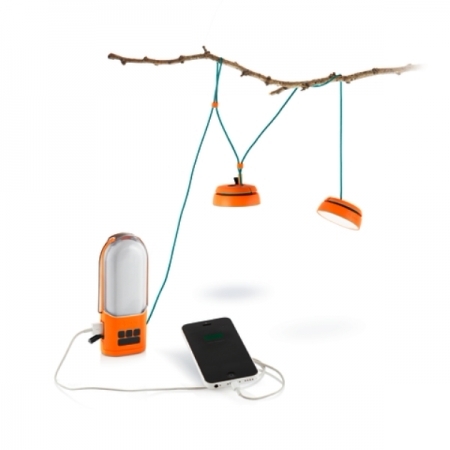 • Отдельно, сложенные в виде компактной сферы, к аккумулятору прилагаются две лампы SiteLight, которые можно соединить между собой, подвесить к потолку или развесить на ветках деревьев. Лампы буду освещать пространство под собой на расстоянии до 3 м. Угол наклона ламп и длину провода можно регулировать. Общая длина провода – 25 м, что позволяет осветить значительную площадь;