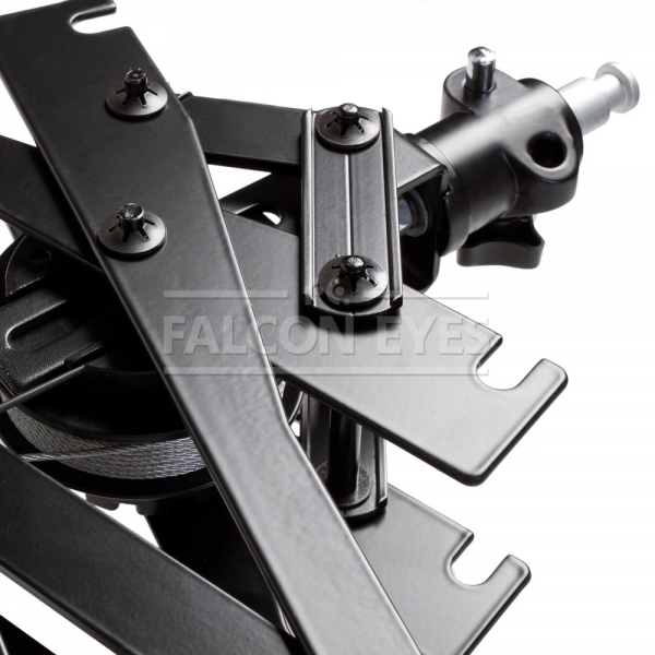 Пантограф #3320 предназначен для подвесного крепления осветительных приборов. Является составной частью подвесных потолочных систем Falcon Eyes B3030B и B3030C. Пантограф #3320 соответствует индустриальным стандартам ООН 3569 и немецким индустриальным правилам стандартов производства 15560-46. Изготавливается из сплава алюминия. Крепление осуществляется соединителем диаметром 5/8 дюйма (16мм) и имеет двойную защиту тросиком толщиной 2мм (индекс безопасности 12). Возможность регулировки амортизатора позволяет настроить нагрузку от 0 до 15кг. Упругость амортизатора зависит от массы груза (если нагрузка большая, амортизатор должен быть жестким; в противном случае, амортизатор должен быть ослаблен). Это обеспечивает плавность движений. |