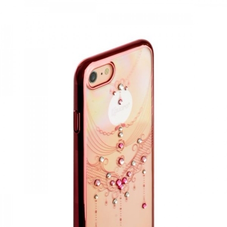 Пластиковый чехол-накладка от KAVARO - отличное решения для защиты корпуса iPhone 7. Аксессуар выполнен из хромированного пластика, и красивые отражения на нем создают впечатление, что KAVARO 79G сделан с использованием драгоценных металлов. Прозрачная задняя часть этого чехла декорирована оригинальным орнаментом и инкрустирована переливающимися стразами Swarovski. Аксессуар отлично дополняет дизайн смартфона, выглядит стильно и богато, защищая ваш iPhone 7.