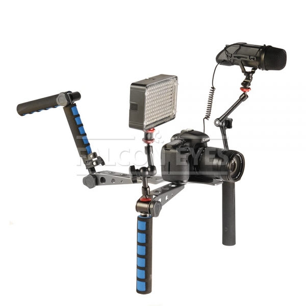 При использовании в качестве наплечного штатива max расстояние между ручками составляет 400 мм (регулируется), длина ручек 210 мм. Снизу и сверху в ручках имеются отверстия 1/4 дюйма для крепления дополнительных аксессуаров (осветителей, микрофона