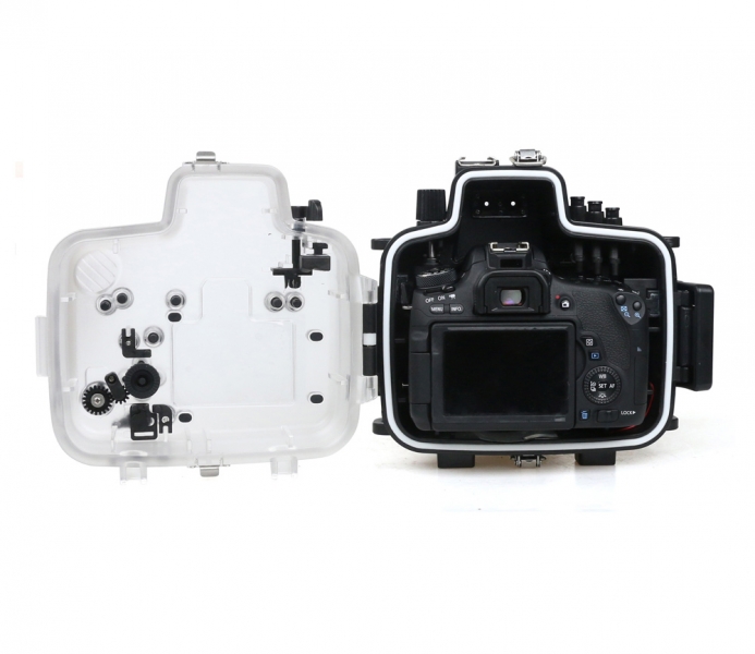 Подводный бокс (аквабокс) Sea Frogs для фотоаппарата Canon EOS 760D (18-135 мм) Подводный бокс для Canon EOS 760D сделан из прочного поликарбоната. Бокс имеет сменные порты для объективов, в комплекте поставляется с портом под объектив EF-S 18-135 STM. Байонет Type 1. Глубина пгружения 40 метров. Оптический порт позволяет подключать внешние вспышки. Имеет датчик протечки со звуковым и световым сигналом. На боксе также установлен оптический видоискатель. Также бокс имеет крепление типа "холодный" башмак и снизу два штативных гнезда. Удобная эргономика позволит вам быстро управлять всеми функциями фотокамеры.