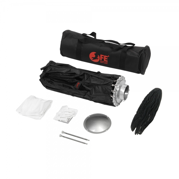 Falcon Eyes SoftLight Octa 100 BW – быстроскладная универсальная портретная тарелка ("beauty dish") диаметром 100 см и байонетом Bowens, предназначена для использования с импульсными источниками света или светодиодными источниками постоянного света мощностью до 300 Вт. В сложенном виде тарелка занимает мало места и помещается в сумку размером 64х20х20 см (сумка входит в комплект поставки).