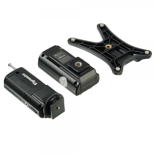 Передатчик устанавливается в «горячий башмак» камеры, фиксируется винтом и передает сигнал на приемник. Кнопка «Тест» на передатчике позволит провести проверку настройки синхронизатора и смоделировать работу осветителей. Синхроразъем позволит подключить передатчик к камере, не оборудованной «горячим башмаком» (кабель в комплекте). Конструкцией предусмотрена функция спящего режима, что сокращает потребление энергии, когда передатчик не используется. Время работы передатчика от одной батареи — год в режиме ожидания или 20000 непрерывных срабатываний. Питается от батареи типа 23А (12 В). Приемник подключается к накамерной вспышке с помощью разъема «горячий башмак» или к студийной вспышке синхрокабелем из комплекта, работает двух батареек типа ААА и «запускает» вспышку при получении сигнала от передатчика. Резьба 1/4" позволит закрепить приемник с вспышкой на опоре (стойка, штатив При использовании устройств Canon или Nikon для управления вашей фотовспышкой скорость синхронизации достигает 1/250 секунды, а расстояние дистанционного управления — 100 метров (на открытой местности). В комплекте: две батарейка типа ААА, одна батарейка типа 23А, синхрокабель 2,5 мм — PC, синхрокабель 2,5 мм — 3,5 мм, синхрокабель 2,5 мм — синхроконтакт камеры (см. таблицу совместимости), переходник 3,5 мм — 6,3 мм.