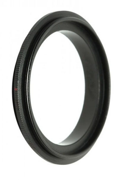 Реверсивное кольцо предназначено для макросъемки. Позволяет присоединить один объектив на другой в перевернутом положении. Кольцо вкручивается в резьбу светофильтра одной стороной в один объектив, а другой стороной в другой объектив, после этого такая связка присоединяется к камере. Благодаря реверсивному кольцу вы сможете снимать мелкие объекты с очень большим увеличением, не тратя много средств на специальные макрообъективы. Обычно в качестве объектива, который работает в обычном режиме и присоединен к камере, используют длиннофокусный объектив, а в качестве второго (реверсивного) объектива используют короткофокусный объектив. В противном случае будет сильное виньетирование. Если в качестве основного объектива используется автофокусный объектив, то возможность автофокусировки сохраняется.