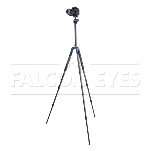 - Реверсивная центральная колонна. Реверсивная центральная колонна может быть перевернута, что позволит проводить макросъемку или предметную съемку с минимальной высоты. Для точной настройки высоты штатива, конструкцией предусмотрена регулировка высоты центральной колонны с прочной фиксацией цанговым зажимом, снизу колонны находится подпружиненный крюк для груза-противовеса. На площадке для головы находится двусторонний винт с резьбами 1/4" и 3/8".