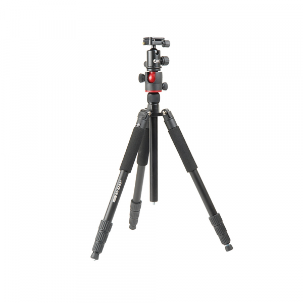Штатив Falcon Eyes Hangman 165 BH1 Фотоштатив Штатив Falcon Eyes Hangman 165 BH1 универсальный устойчивый 4-секционный алюминиевый штатив с механизмом наклона центральной колонны предназначен для стабилизации изображения при фотосъёмке зеркальными фотоаппаратами весом до 5 кг. Ножки штатива изготовлены из алюминиевых трубок (диаметр 25, 22, 19 и 16 мм), а цанговые зажимы секций – из прочного ABS пластика. Максимальная высота 187 см. Купить штатив Falcon Eyes Hangman 165 BH1 можно фотографам, которые работают на выезде, занимаются предметной съёмкой и нуждаются в профессиональном устройстве для надежной фиксации камеры. Максимальная рабочая высота штатива с выдвинутой центральной колонной — 187 см, минимальная рабочая высота с центральной колонной в вертикальном положении — 52 см. Длина в сложенном виде — 46 см. Надежная и быстрая фиксация камеры Съёмная шаровая голова обладает высокой прочностью и прецизионным исполнением. Винтовое крепление головки имеет резьбу 3/8“. Независимый фиксатор горизонтального панорамирования. В основании головки нанесена шкала, которая позволяет отслеживать углы поворота. Головка оснащена быстросъёмной площадкой с противоскользящими накладками и предохранителем, предотвращающим её выпадание. Винт для крепления оборудования с резьбой 1/4“. Размер площадки 45 х 54 мм. Механизм наклона и поворота центральной колонны Особенностью штатива Штатив Falcon Eyes Hangman 165 BH1 является возможность установки центральной колонны в горизонтальное положение и поворота её относительно оси штатива на 360°. Для этого нужно просто вывести колонну в максимально верхнее положение и повернуть её на 90° с последующей фиксацией зажимным винтом. Колонна реверсивная, т. е. перевернув её на 180°, можно производить съёмку с самой нижней точки Все манипуляции с колонной — перевод и фиксация в горизонтальном положении, «переворот» колонны на 180° - не требуют никакой разборки или применения ключей и инструментов. Центральная колонна Площадка для установки головки для камеры снабжена винтом с резьбой 3/8“. Для предотвращения жёсткого удара при складывании центральной колонны, под площадкой предусмотрен амортизатор в виде эластичного кольца. Для дополнительного усиления в основании колонны находится съёмный крюк для груза. Четыре секции ног Четыре секции ножек штатива изготовлены из алюминиевого сплава. Анодированное покрытие обеспечивает сопротивление ржавчине, а большой диаметр секций позволяет уменьшить вибрацию. Диаметр ножек штатива — 25, 22, 19 и 16 мм. Секции ног надежно фиксируются цанговыми замками из ABS пластика. Ножки штатива имеют фиксаторы угла наклона которые расположены на верхних секциях ножек — у их основания. Селекторы угла расстановки ног позволяют зафиксировать каждую ногу на любом из трех заданных углов независимо друг от друга, это обеспечивает большую гибкость для позиционирования камеры и дает возможность использовать в качестве опоры ступени, камни или другие сложные поверхности, а также проводить съемку с нижней точки. Механизм фиксации и шарнир наклона ножек изготовлены на высокоточном CNC оборудовании. Все три верхние секции ножек снабжены накладками-рукавами из вспененного материала. Это обеспечивает комфортное удержание штатива в холодное время года. На концах штативных ног размещены пятки с резиновыми наконечниками и металлическими