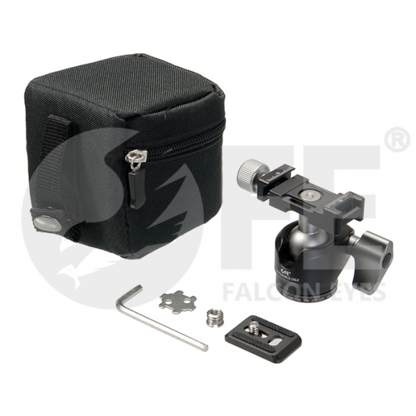 Falcon Eyes Dynamics 062 шаровая штативная голова с быстросъемной площадкой и поворотным основанием для горизонтального панорамирования, предназначена для установки камер весом до 6 кг, диаметр шара 25 мм, размер площадки 25х38 мм. Материал PTFE Между корпусом головы и шаром находится вкладыш из фторпласта (PTFE) - антифрикционного материала, который уменьшает поверхностное сопротивление и обеспечивает плавное и гладкое вращение шара без рывков, даже при близком к максимальному уровню усилия зажима. Фторпласт обладает большой долговечностью, обеспечивает стойкость к высоким механическим нагрузкам и, благодаря низкому коэффициенту трения, не требует применения специальной смазки. LSA технология Фиксатор головы оборудован технологией LSA (Lock System Assisted), которая сочетает в себе две функции, регулирует плавность хода шара и обеспечивает мощный зажим при фиксации. Эргономичное управление На голове расположены всего два винта-фиксатора, которые управляют всеми движениями головы – фиксатор быстросъемной площадки и фиксатор шара. Фиксаторы имеют высокий блокирующий крутящий момент, что позволяет выдерживать большую нагрузку и надежно удерживать голову с оборудованием. Быстросъемная балансировочная площадка Подвижная быстросъемная площадка дает возможность балансировки камеры. Шкала, нанесенная на базе под площадку, поможет запомнить положение камеры. На площадке находится винт 1/4" и два перпендикулярно расположенных паза для возможности дополнительных балансировок. Поворотное основание Основание головы представляет собой поворотный диск с нанесенной шкалой, шаг шкалы 2,5˚. Снизу на основании головы расположено крепежное отверстие диаметром 3/8" для установки головы на штатив или другую опору. Легкая и прочная Штативная голова изготовлена из легкого и прочного алюминиевого сплава и весит 0,177 кг. Покрытие элементов конструкции выполнено методом глубокого анодирования и отличается высокой твердостью. Все шкалы на головке нанесены лазером, в отличие от краски такой способ нанесения гораздо устойчивее к истиранию. Штативная голова комплектуется мягким кейсом для хранения и транспортировки.