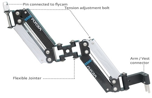 Легкая, удобная двухсекционная рука очень проста в работе, поэтому подойдет даже новичкам. Рука оборудована пружиной натяжения, которая регулируется в ручную. Пружина поддерживает стедикам и устанавливается в определенное положение в зависимости от веса камеры. Рука совместима с камерами массой не более 6 кг. Ее можно закрепить как с правой, так и с левой стороны стедикама.