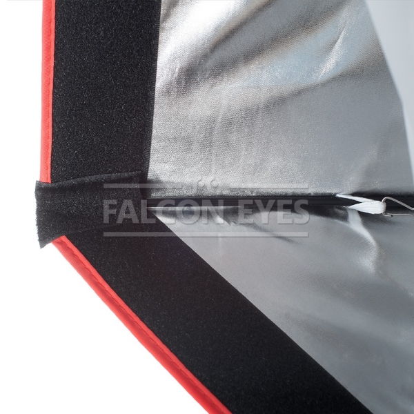 - Закрытая конструкция позволяет избежать нежелательных бликов и потерь светового потока. Отражатель, с серебристой тканью внутри, обеспечивает равномерную засветку рассеивателя, который в свою очередь, благодаря большой поверхности, смягчает формируемые тени. Дополнительный внутренний диффузор улучшает равномерность светового потока. Наконечники на упругих металлических спицах не повреждают тканевые спицедержатели софтбокса и облегчают сборку конструкции.