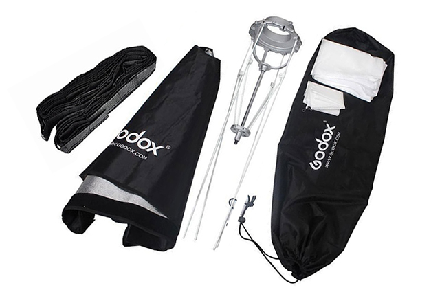 Подбирается под снимаемый объект: небольшие октобоксы применяются крупнолицевых портретов, для получения мягкого освещения. В ростовой съемке подойдут высокие стрипбоксы (вытянутый прямоугольник) и любые другие крупногабаритные модификаторы. Сборка конструкции интуитивно понятна и не требует много времени. Установка на студийный свет происходит через байонетное соединение: литой алюминиевый адаптер и сменное байонетное кольцо на Bowens. Данный вид соединения обеспечивает свободное вращение модификатора.