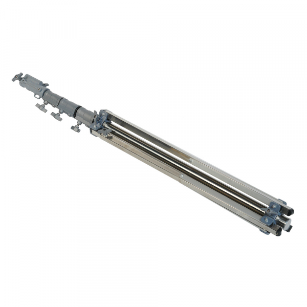 - Телескопическая колонна из 4 секций диаметром 45, 40, 35 и 30 мм надежно соединяются между собой металлическими винтовыми зажимами. Между секциями предусмотрены амортизирующие резиновые кольца.