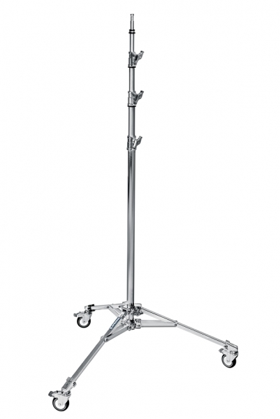 Стойка 4-х секционная стальная, на колесах с тормозным механизмом. Стойки roller используются в фото-, теле- и кинопроизводстве для установки осветительного оборудования, держателей (GripHead), как отдельные стойки для отражателей, гобо, флагов и прочих аксессуаров. Узлы крепления 28мм DIA, 16мм PIN.
