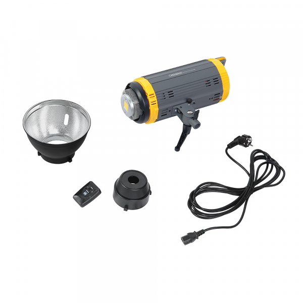 Осветитель светодиодный GreenBean SunLight 100 LEDX3 BW Студийный светодиодный осветитель с байонетом Bowens, мощность светодиода 100 Вт, LCD дисплей, плавная регулировка яркости 10-100%, 16-ти канальный пульт дистанционного управления. GreenBean SunLight 100 LEDX3 BW — обновленная версия светодиодного осветителя SunLight 100 LEDX2 BW. В третей версии появился пульт дистанционного управления, с помощью которого можно менять яркость осветителя, а также вкллючать/выключать его. По-прежнему, осветители этой серии оснащены ЖК дисплеем для точной настройки мощности, новым цифровым диммером и светодиодным чипом последнего поколения, который позволяет стандартизировать цветовую температуру и увеличить ресурс работы. Осветитель применяется в съемке кинофильмов или ТВ-передач в качестве источника основного, заполняющего или контрового света, освещения фона, создания бликов, акцентирования деталей в студийной видеосъемке. Мощность светодиода 100 Вт Источником света служит светодиод мощностью 100 Вт. Светодиод нового поколения обладает большим сроком службы лампы (до 30000 часов) и минимальным тепловыделением. Практически всю получаемую энергию светодиод преобразует в свет, экономия электроэнергии составляет до 80% (по сравнению с галогенными осветителями). Цветовая температура 5600 К Современный светодиодный чип гарантирует стабильность цветовой температуры (5600±200К) и высокое значение индекса цветопередачи (CRI>95) при любой яркости. Плавная регулировка яркости Новый электронный блок управления позволяет плавно регулировать яркость от 10% до 100% без искажения цвета. Значение яркости отображается на LCD экране, индикация 10-100 с шагом 1. Прочный корпус и встроенный вентилятор Благодаря использованию металлического корпуса, осветитель устойчив к механическому воздействию. Встроенный в корпус вентилятор служит для защиты от перегрева. Рефлектор в комплекте Диаметр рефлектора 185 мм. Параболическая форма создает направленный пучок света, а внутреннее серебристое фактурное покрытие обеспечивает равномерное распределение света и плавный переход на границе пучка. Металлический кронштейн Кронштейн позволяет наклонить осветитель вперед/назад и прочно зафиксировать положение. В кронштейне предусмотрено крепление для зонта. Пульт дистанционного управления (16 каналов) Для удобства работы пульт ДУ устанавливается в горячий башмак вашей камеры. Для питания пульта используется элемент питания CR2032. С помощью пульта можно как включать/выключать осветитель, так и регулировать яркость в пределах от 10 до 100% с шагом 1.